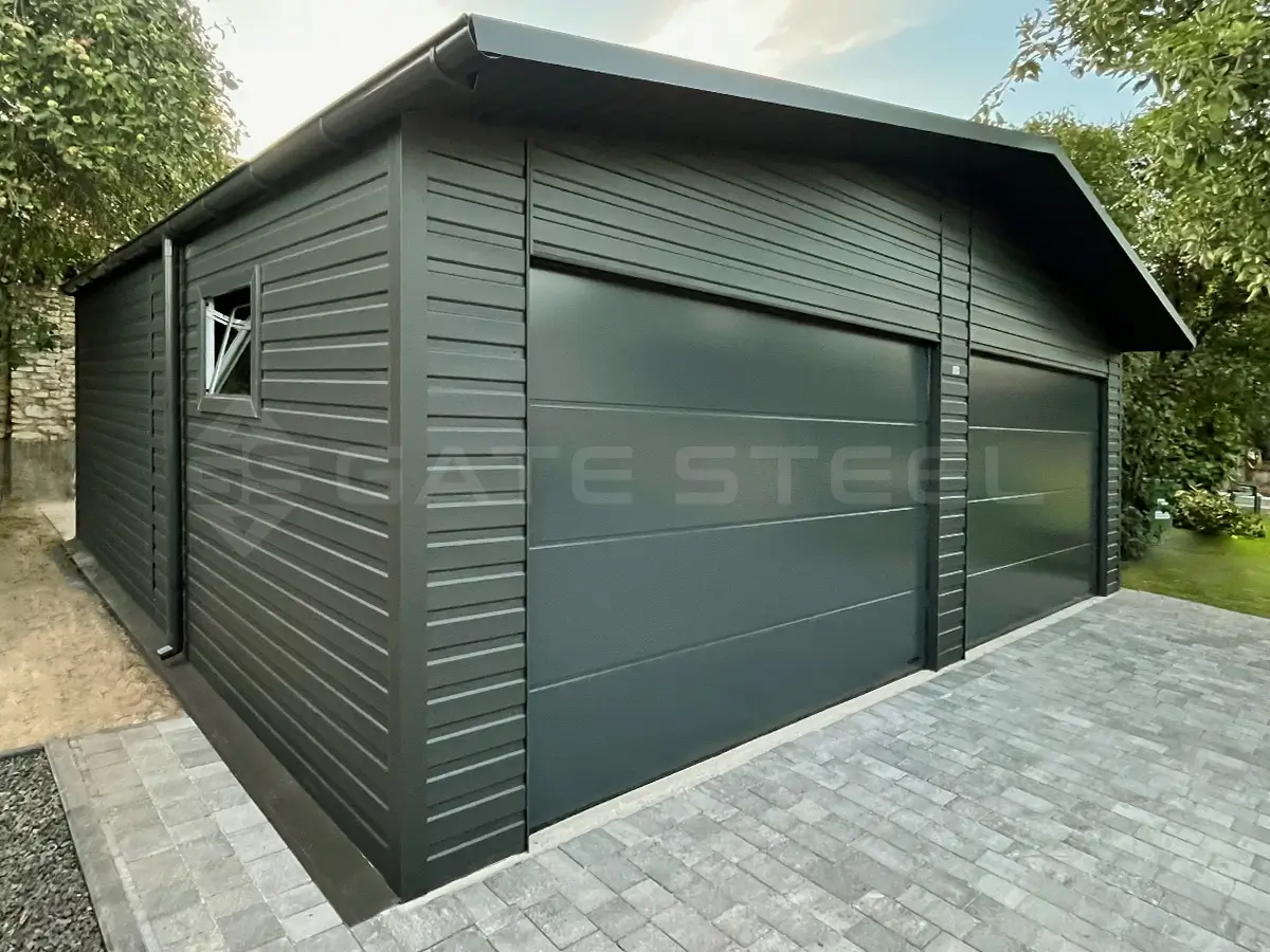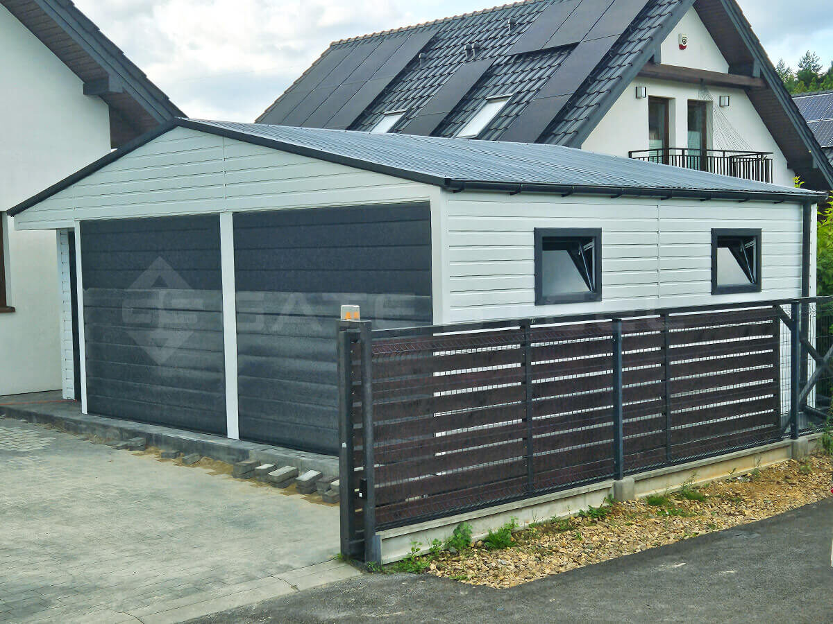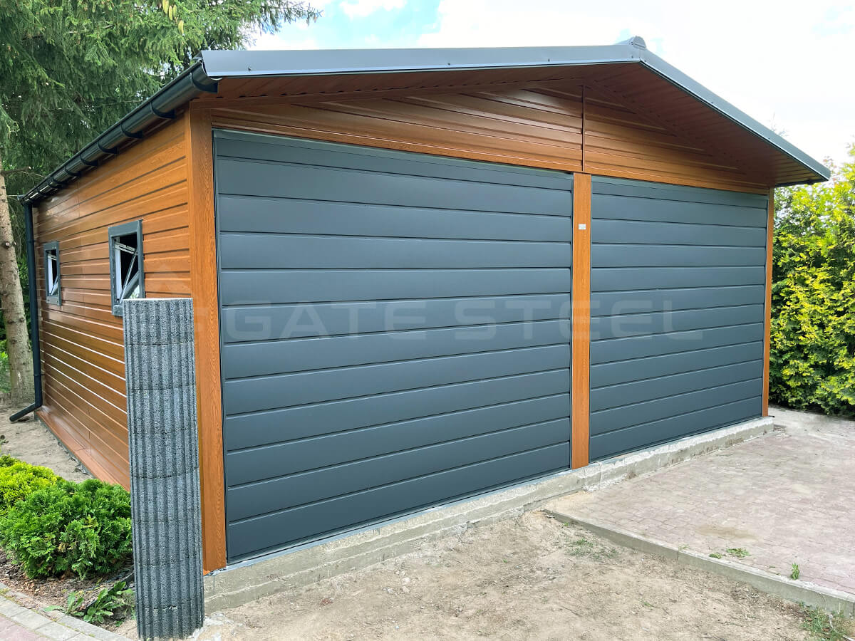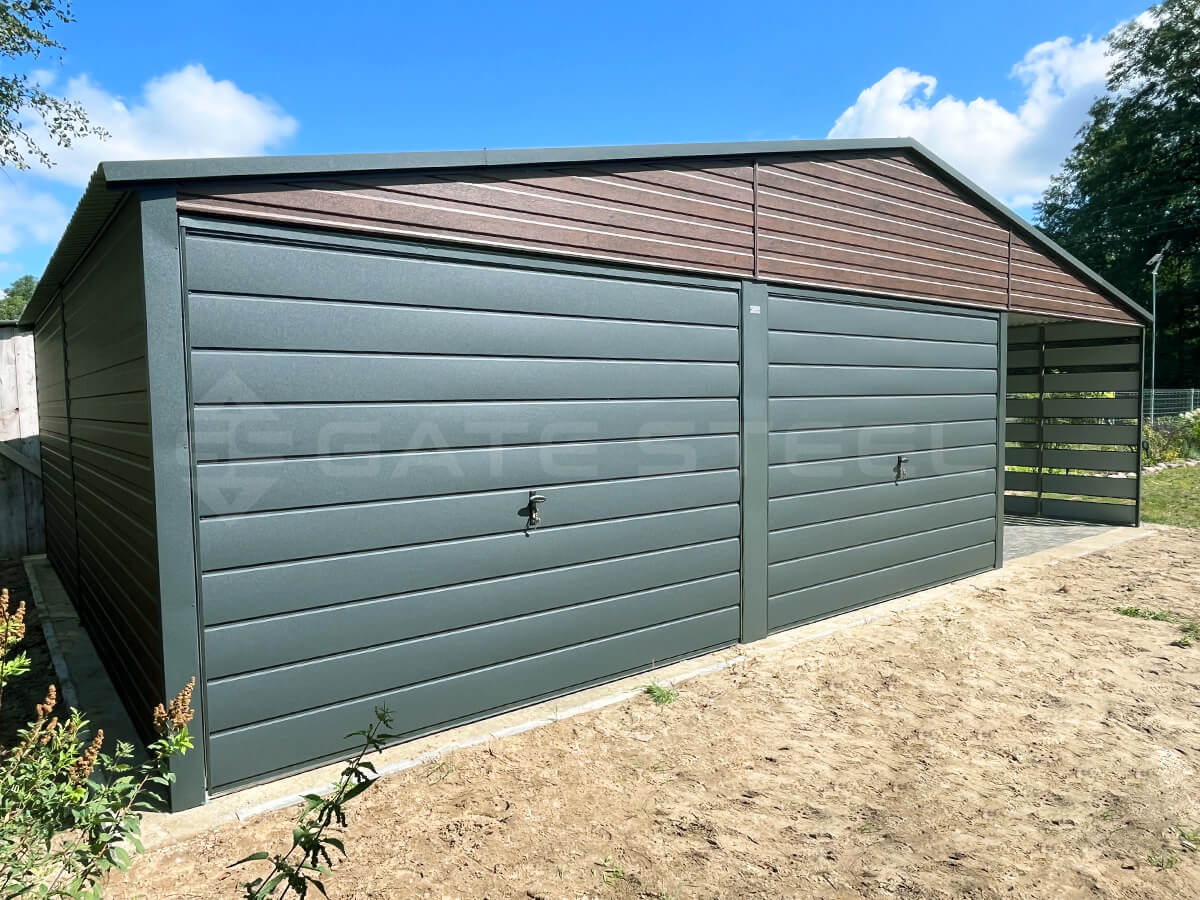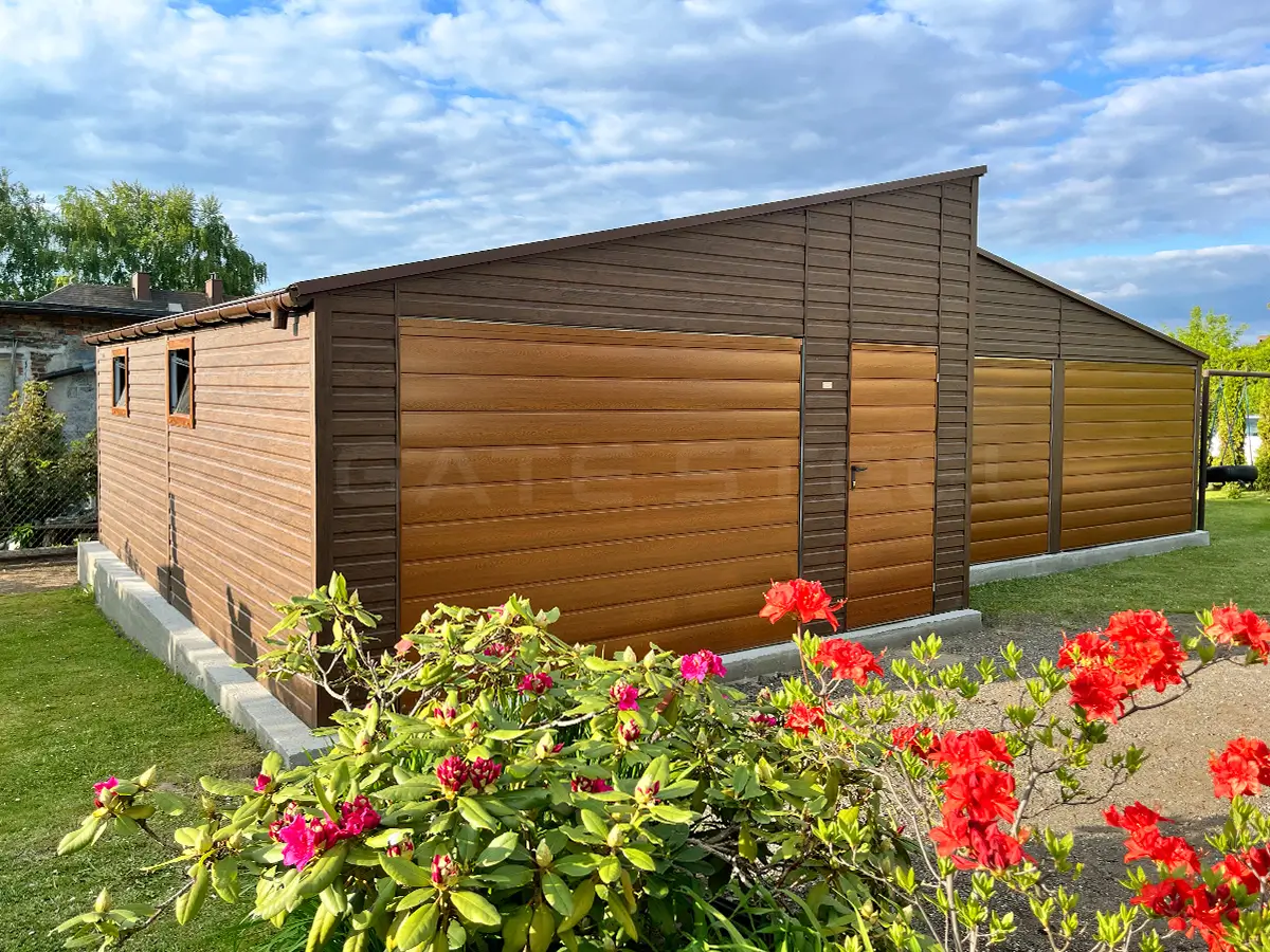 Garaże Premium dwuspadowe - 2 bramy + altana