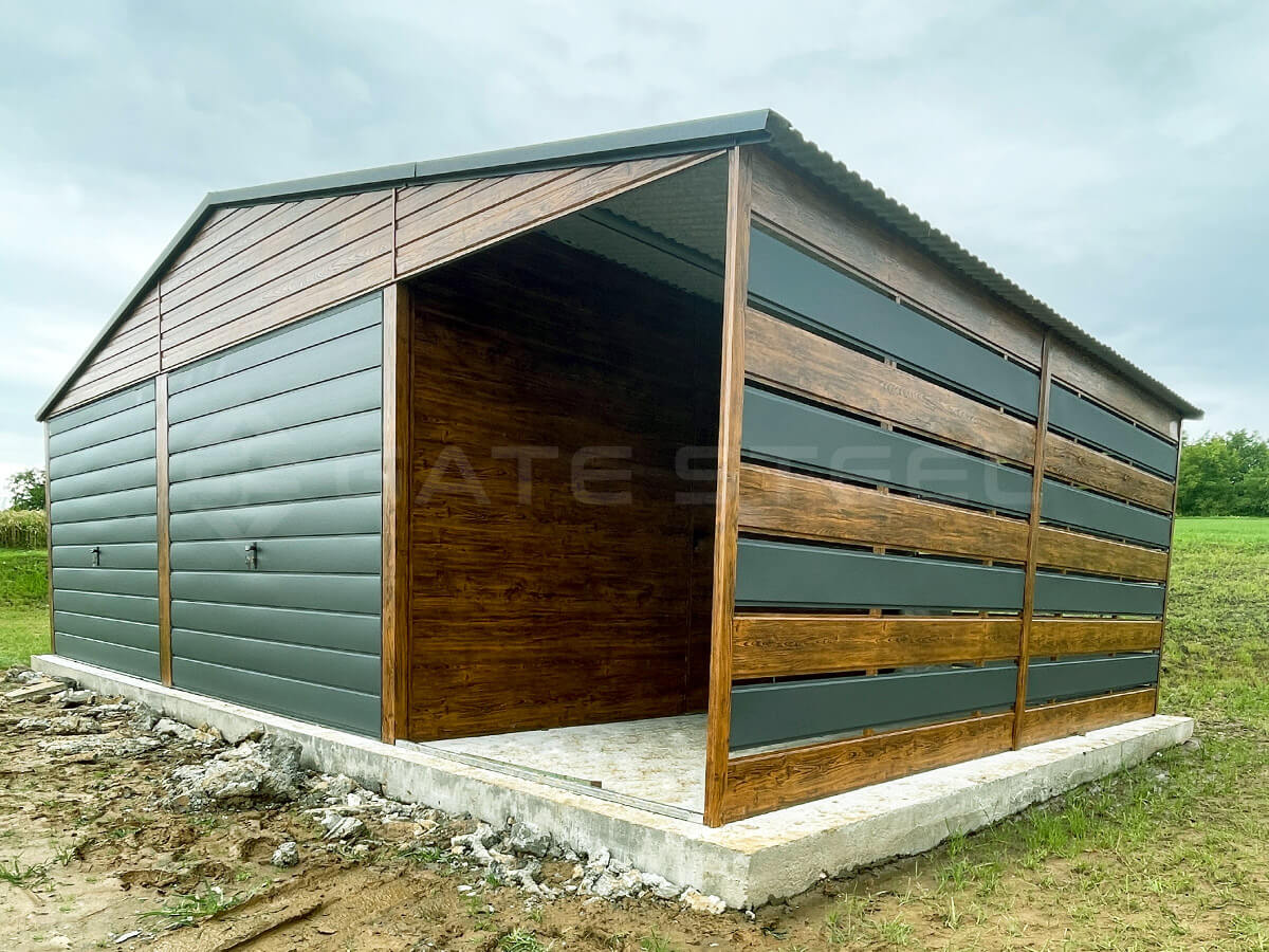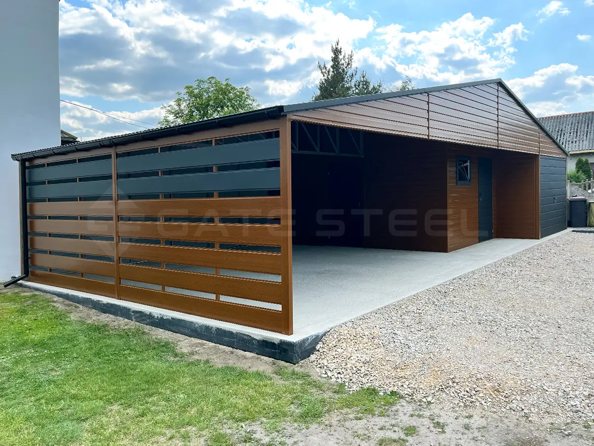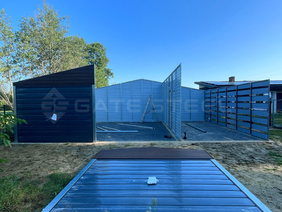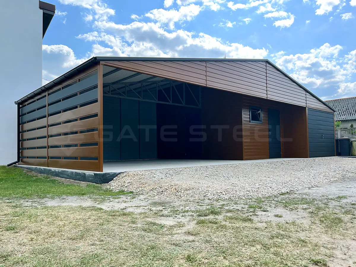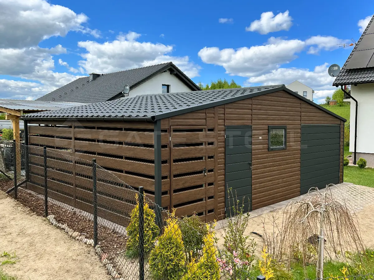 Garaże Premium dwuspadowe - 2 bramy + altana