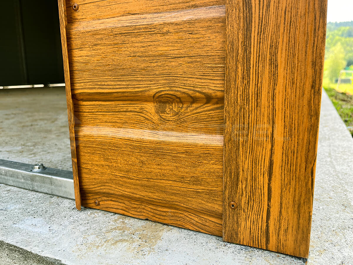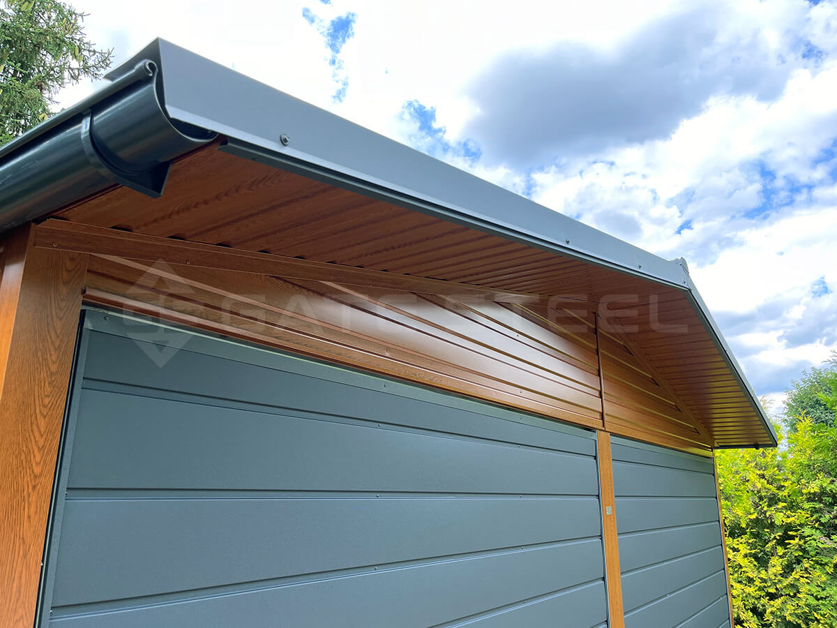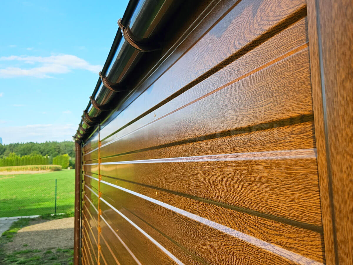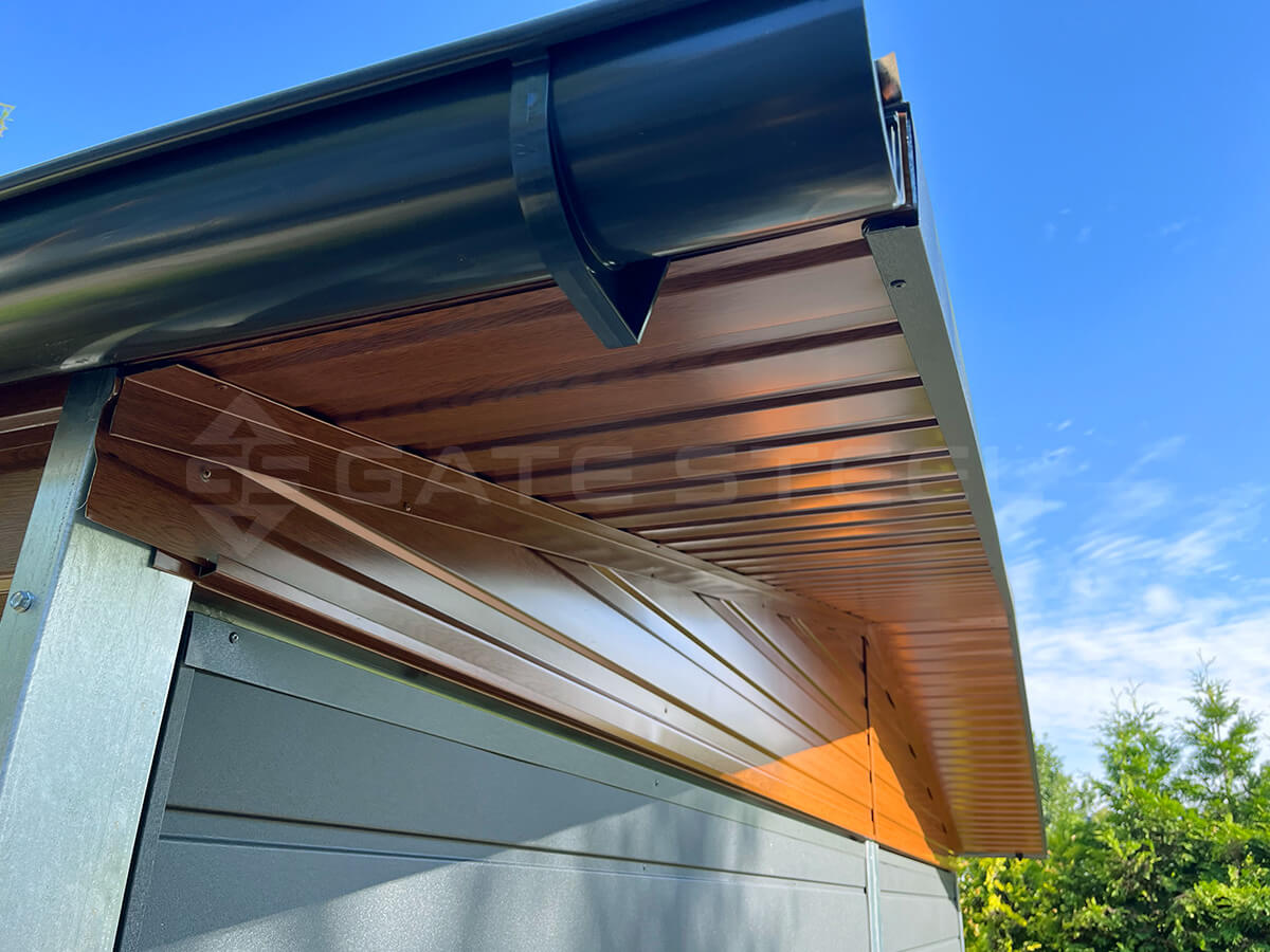 Brama uchylna, obróbki blacharskie narożników i dachu w wyposażeniu standardowym!