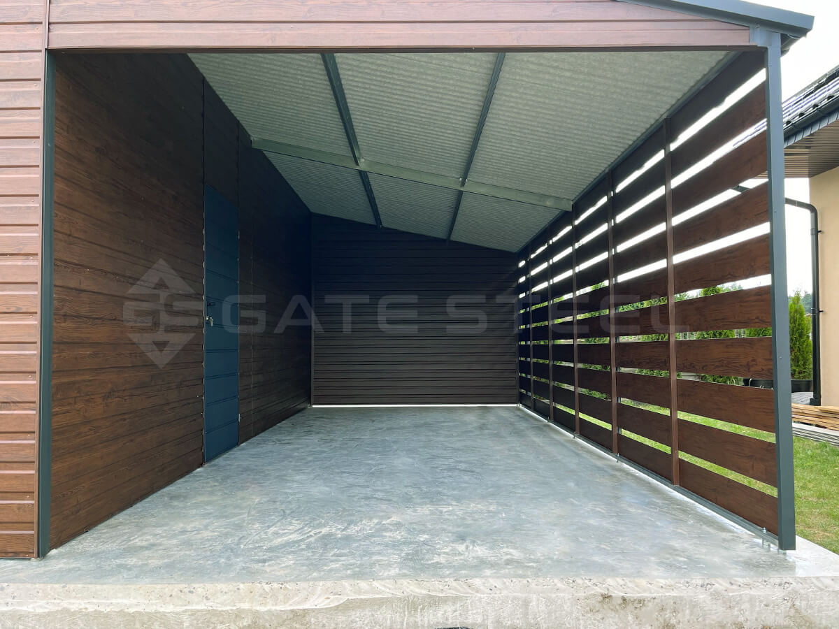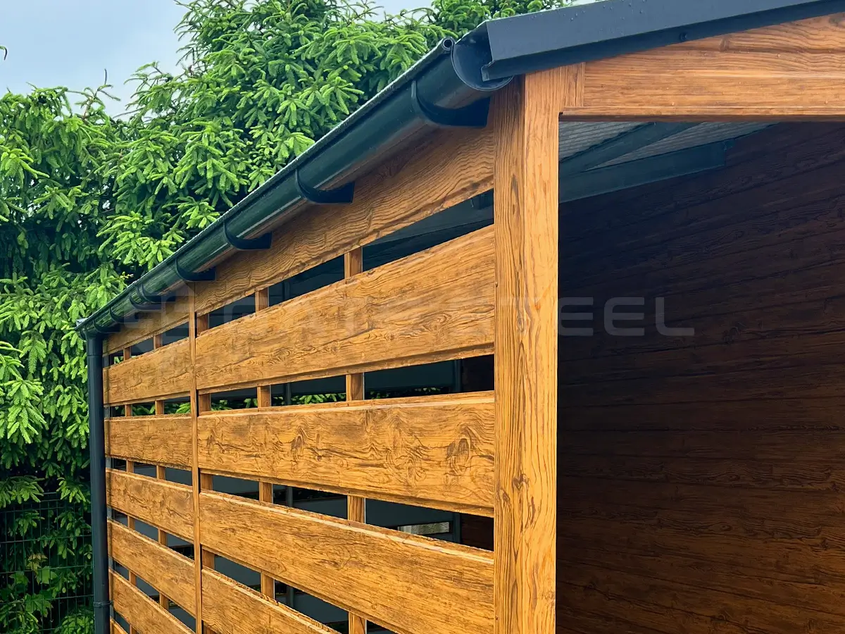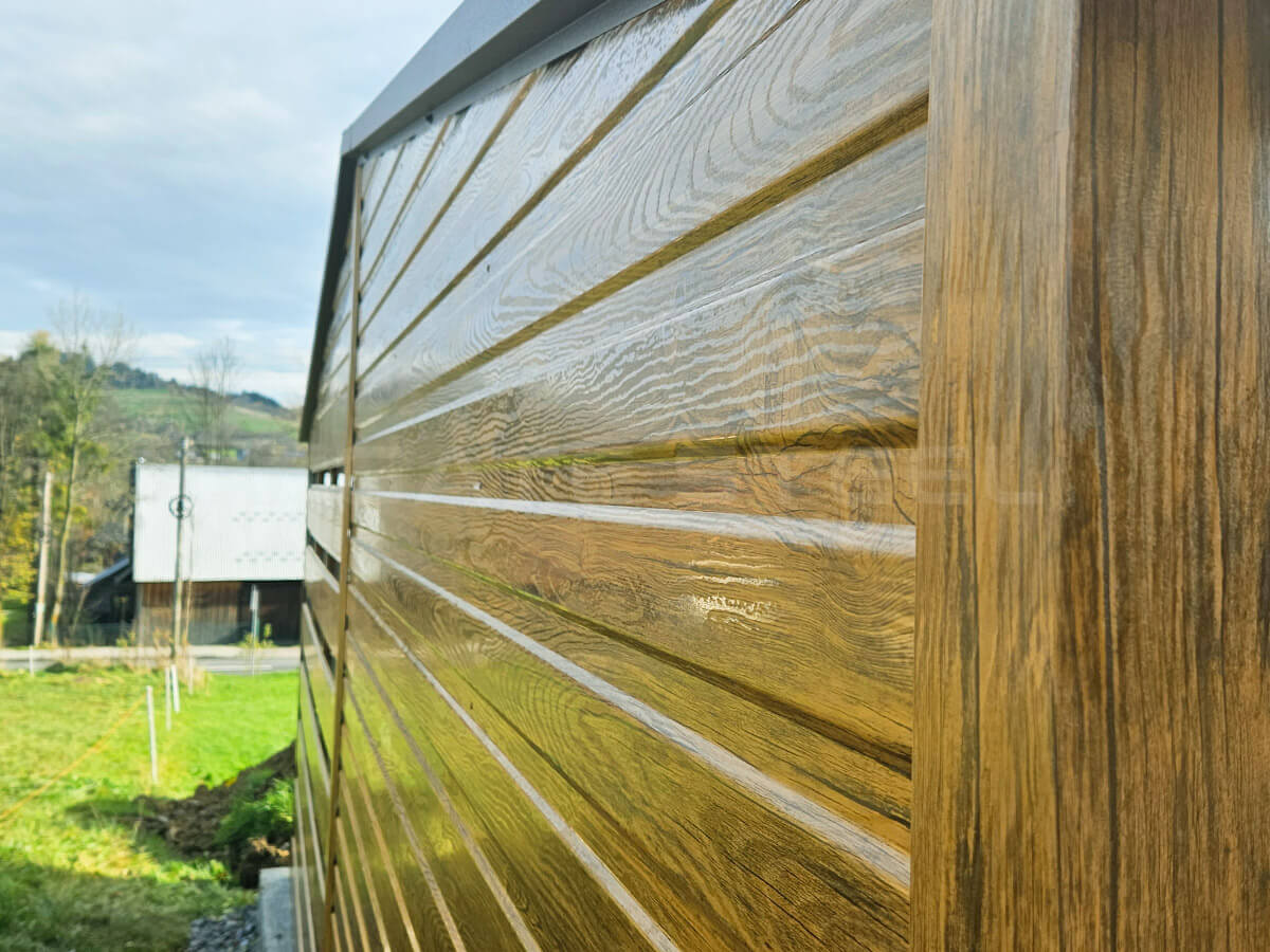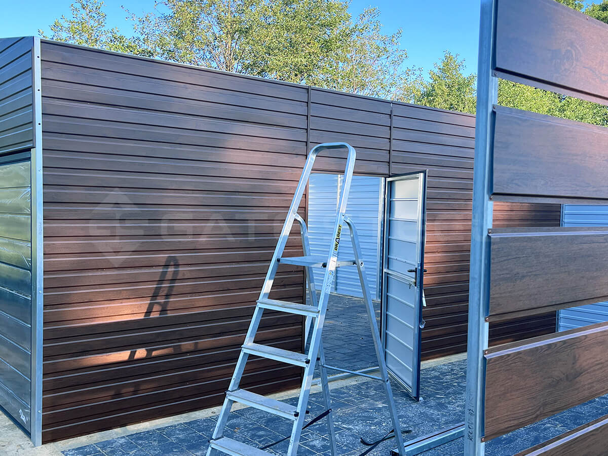 Brama uchylna, obróbki blacharskie narożników i dachu w wyposażeniu standardowym!