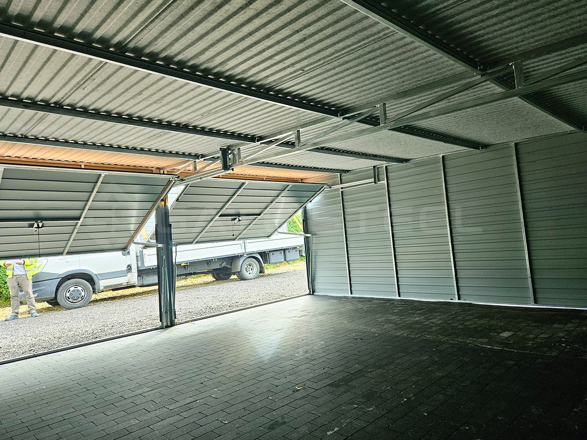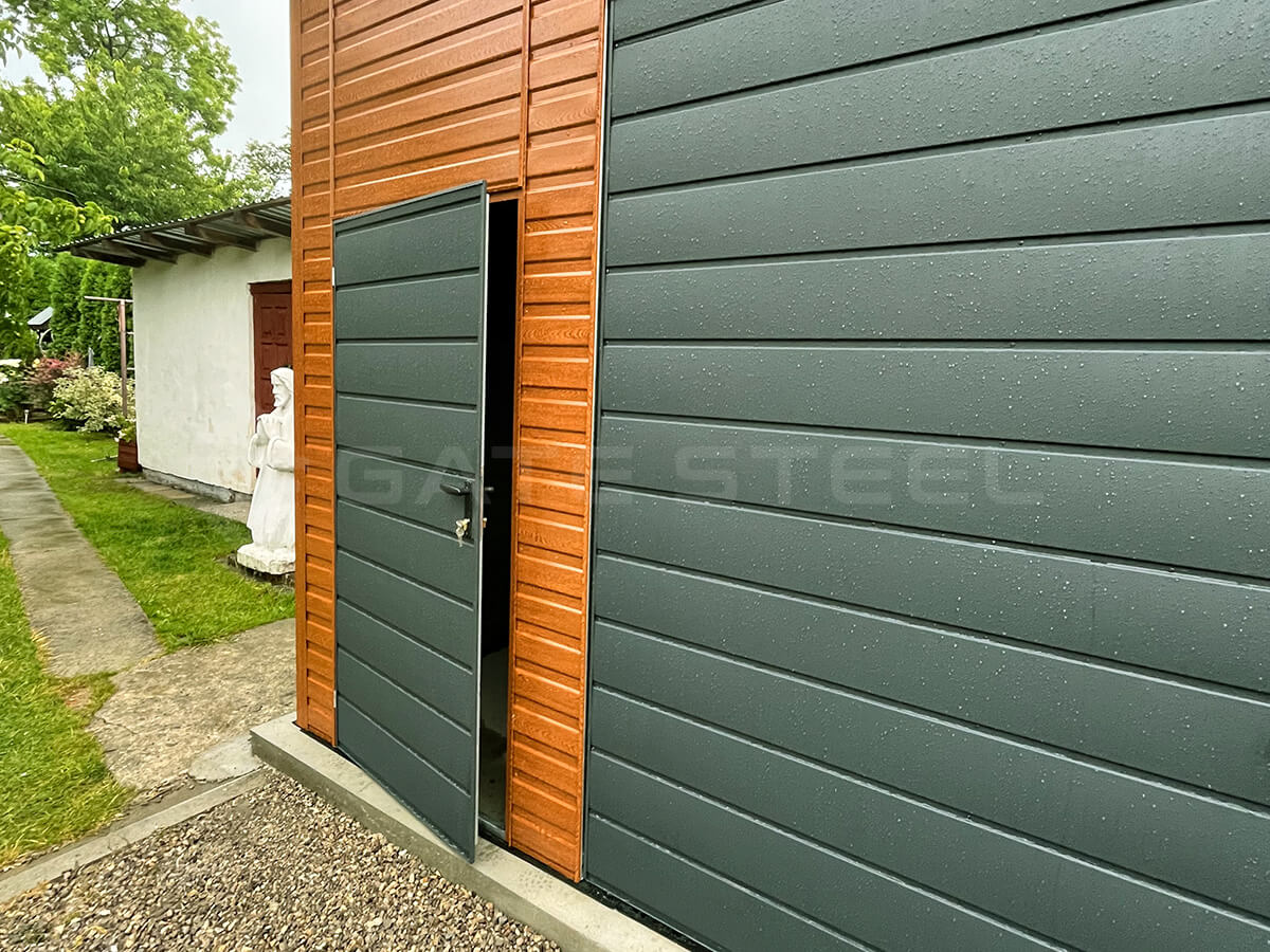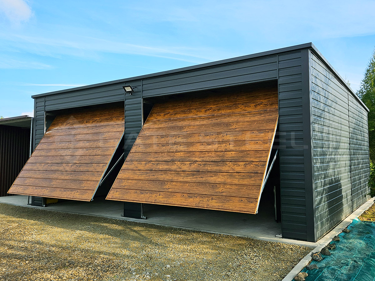 Brama uchylna, obróbki blacharskie narożników i dachu w wyposażeniu standardowym!