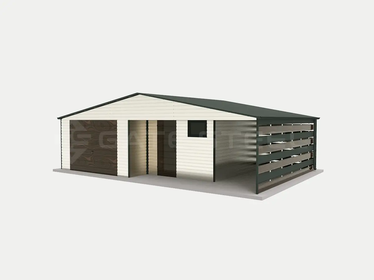 Specyfikacja garażu – Garaż blaszany 9m x 6m z pomieszczeniem gospodarczym i wiatą