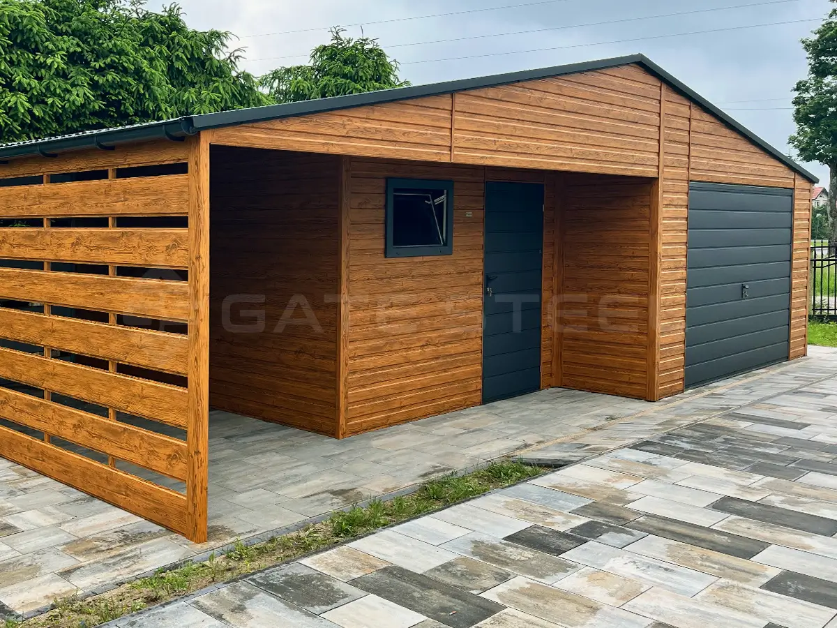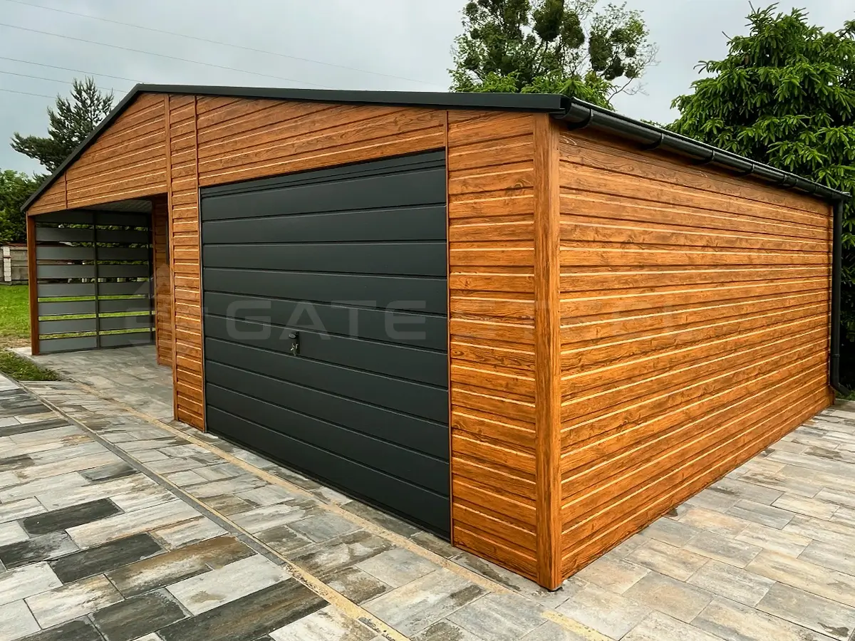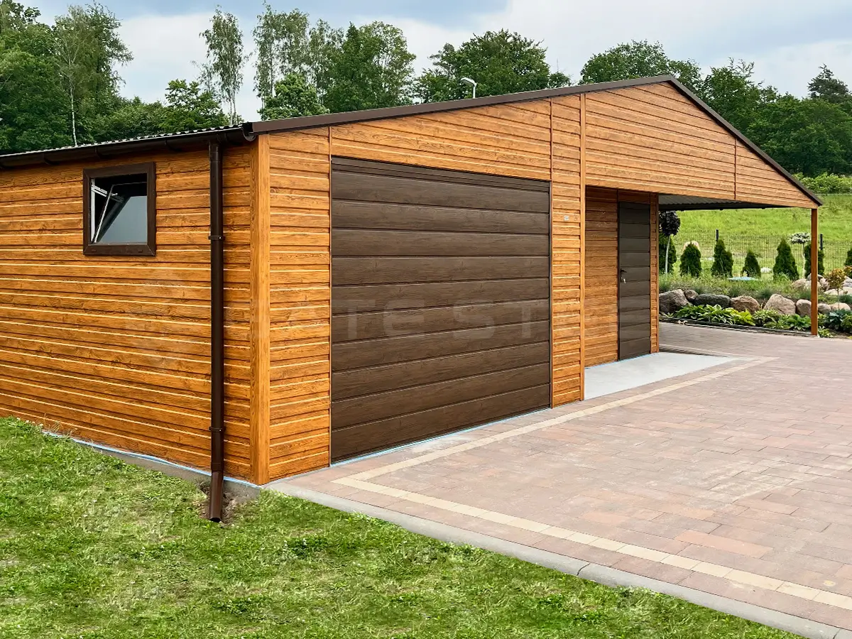 Garaż blaszany 9m x 6m z pomieszczeniem gospodarczym i bramą uchylną