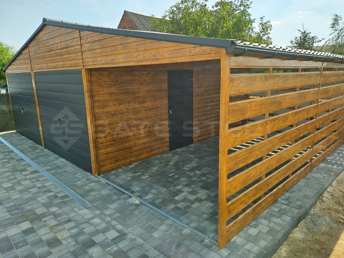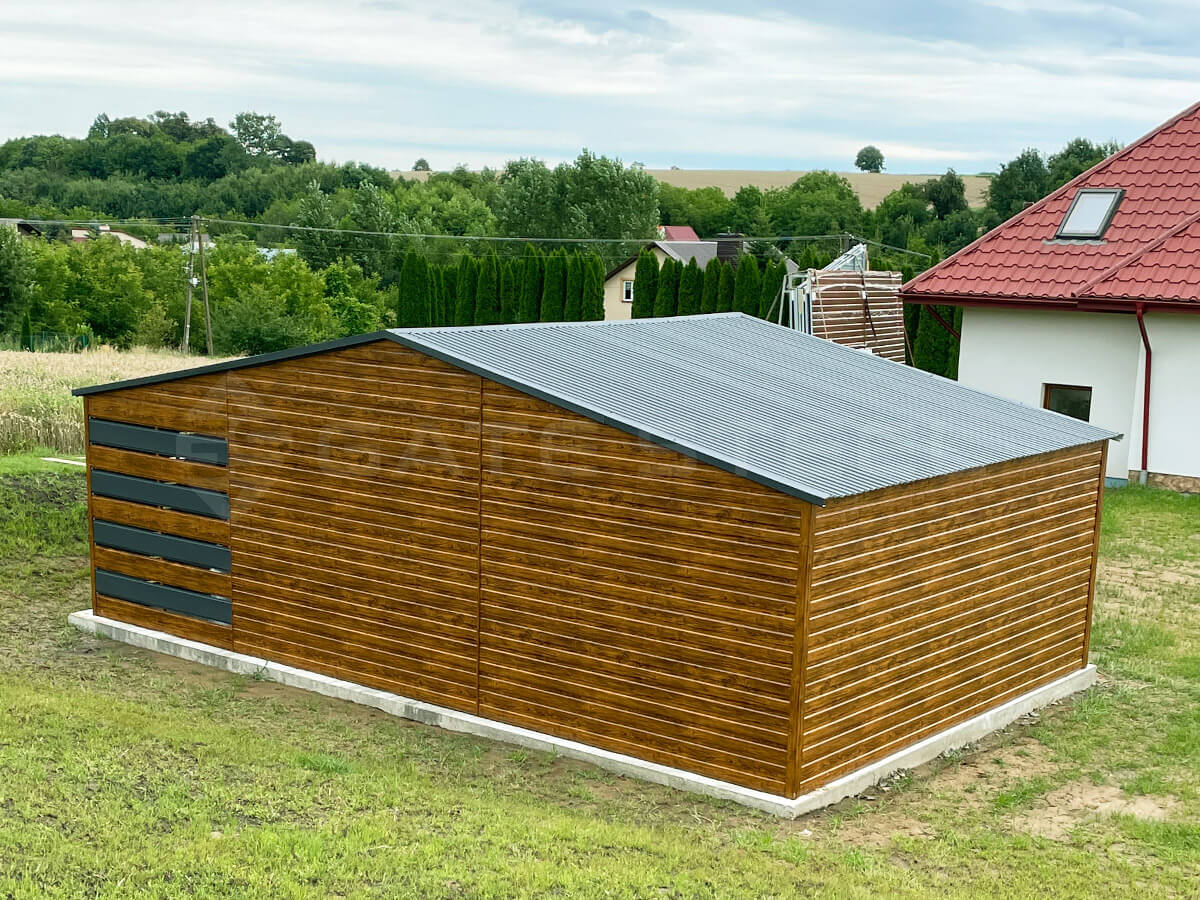 Złoty Dąb + Antracyt/Grafit MAT Garaż spad do tyłu 5m x 5m