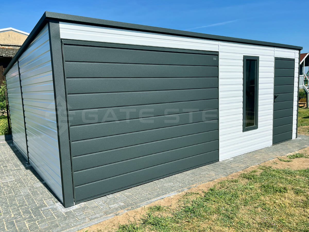 Złoty Dąb + Antracyt/Grafit MAT Garaż Dwuspadowy Premium 4m x 5m