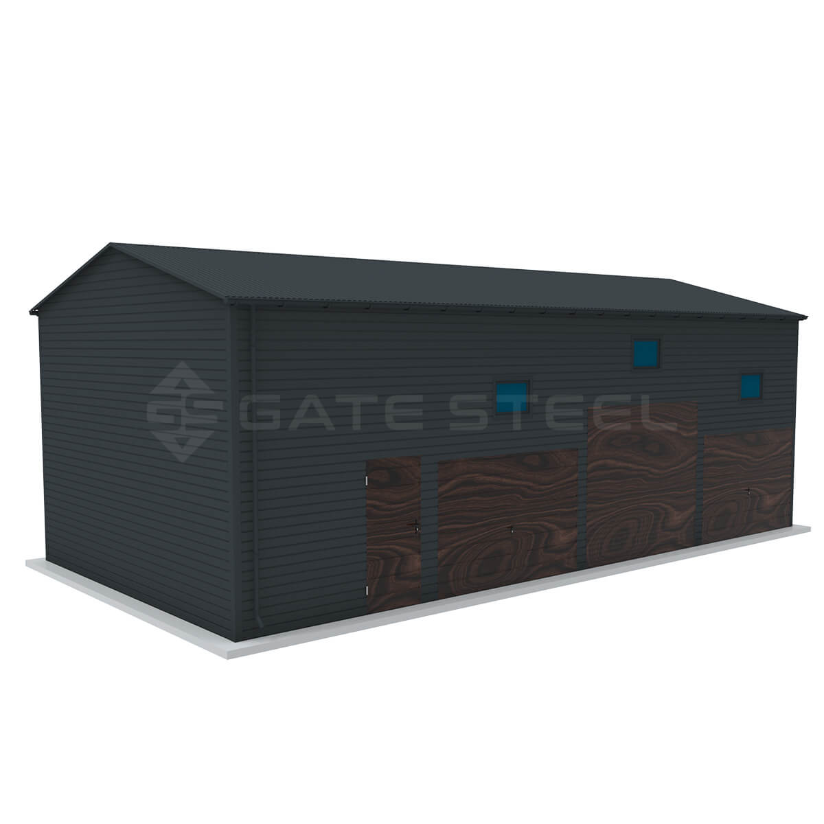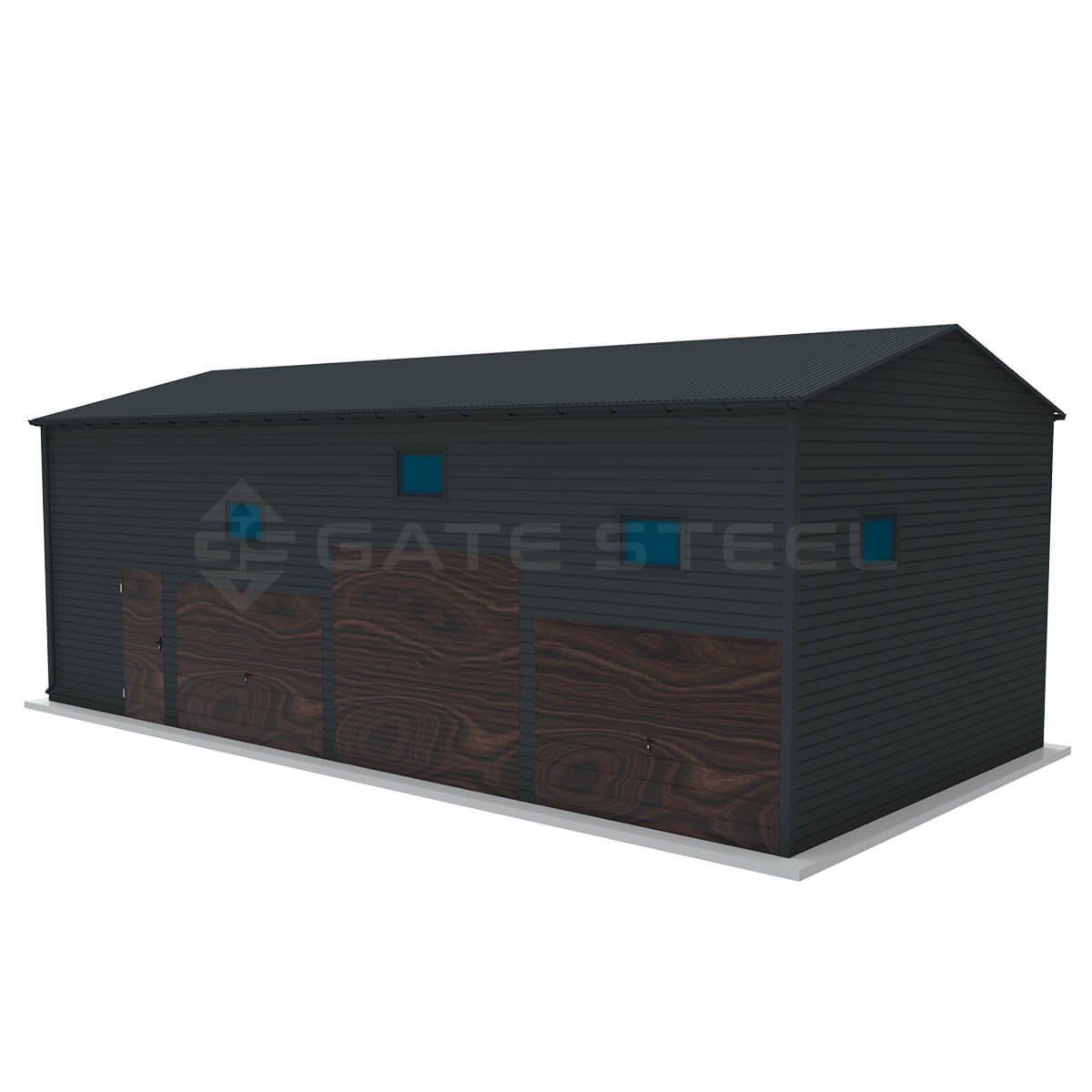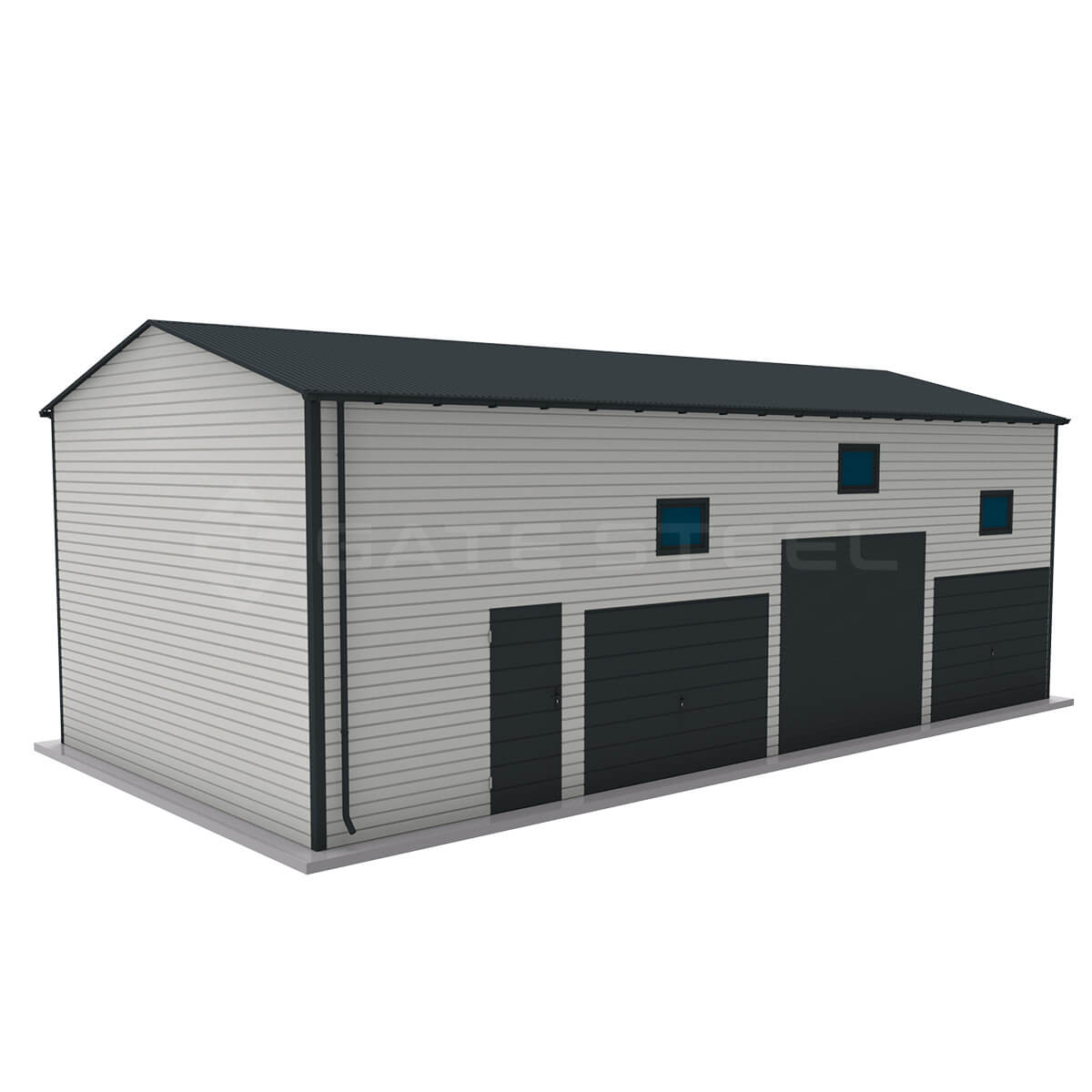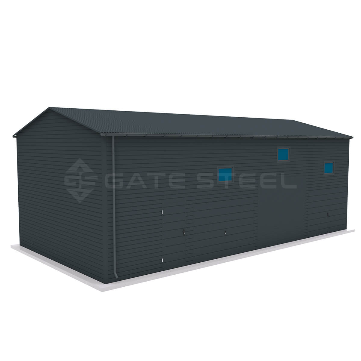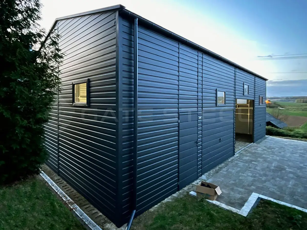 Istnieje możliwość doświetlenia garażu poprzez zamontowanie okien uchylnych o wymiarze 80 x 60 lub 120×60, Stosujemy kolory blach: orzech, złoty dąb, grafit, brąz. Cieknąca woda z dachu może zostać poskromiona poprzez montaż systemu rynnowego, rynna + rura spustowa w trzech kolorach: brąz, grafit, czarny.