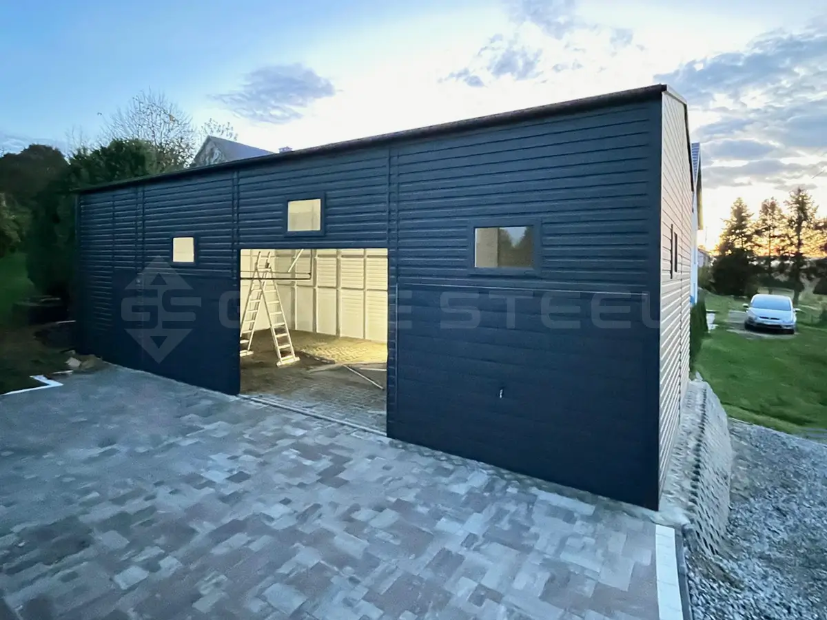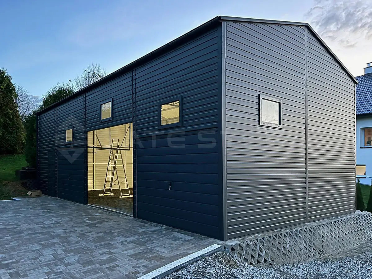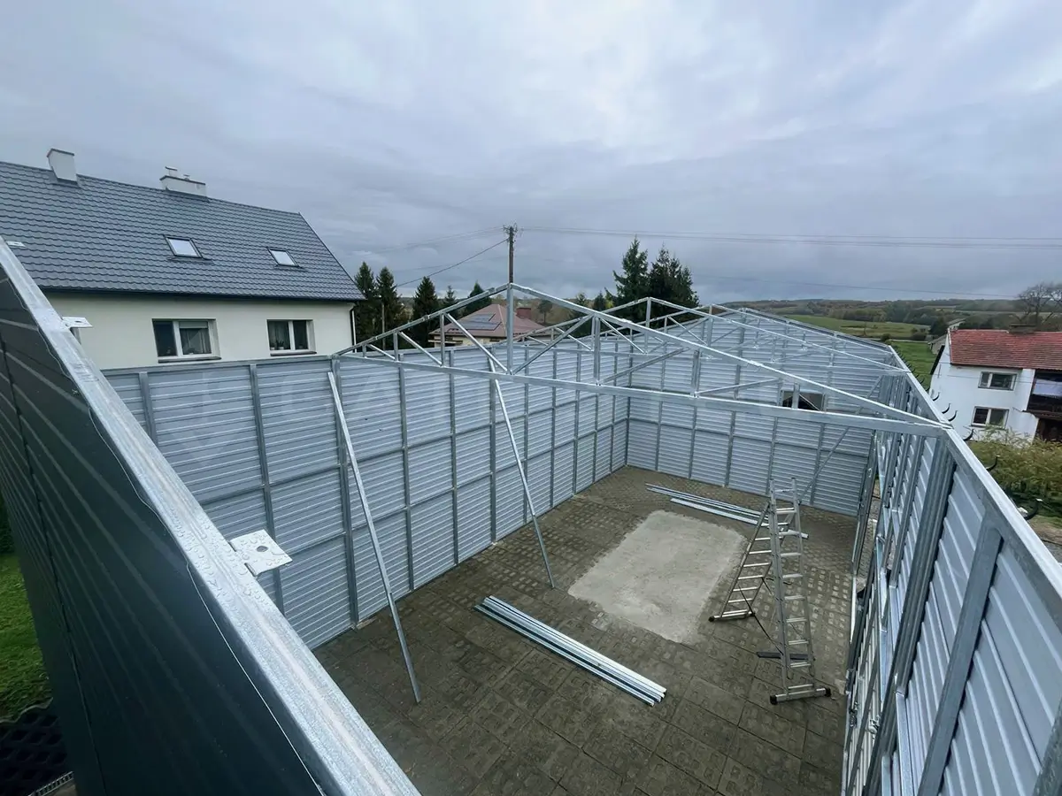 Blachę używaną do produkcji zabezpieczamy folią ochronną, co daje dodatkowe zabezpieczenie przed porysowaniem. Obowiązkiem klienta jest usunięcie folii ochronnej po montażu garażu.