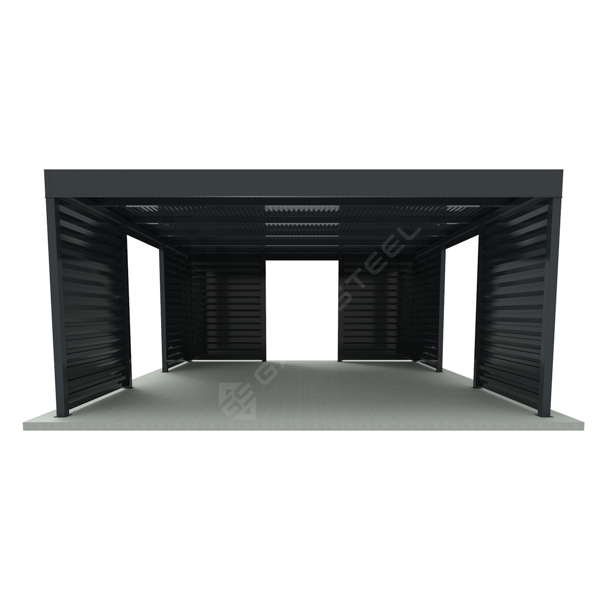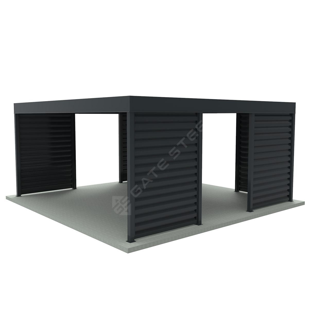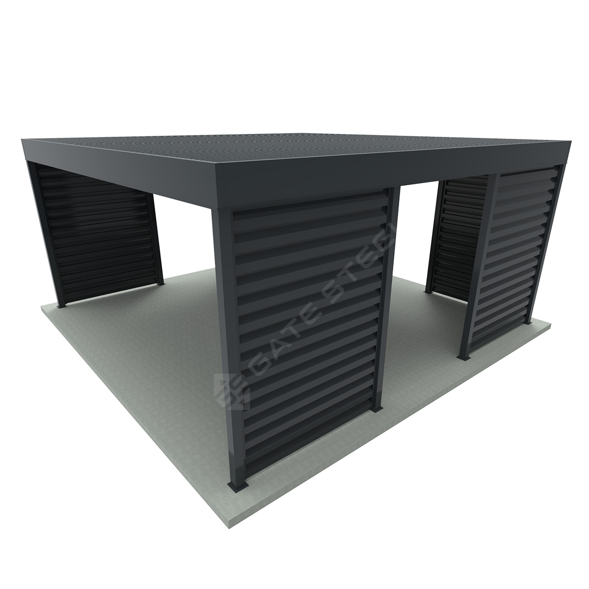- Pełna dyskrecja i osłona – dzięki nowoczesnym, stalowym segmentom Żaluzja Z165, wiata zapewnia doskonałą ochronę przed wiatrem, deszczem i śniegiem, a przy tym całkowicie osłania pojazdy.