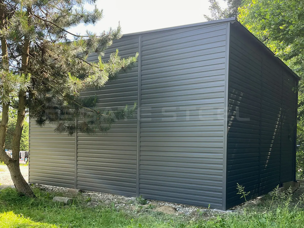 Blachę używaną do produkcji zabezpieczamy folią ochronną, co daje dodatkowe zabezpieczenie przed porysowaniem. Obowiązkiem klienta jest usunięcie folii ochronnej po montażu garażu.